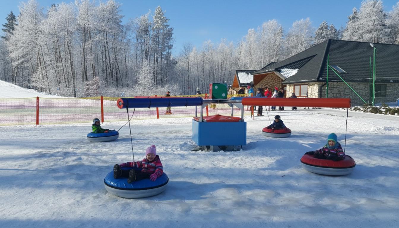 Sezon zimowy: Doskonałe narzędzie do nauki jazdy na nartach (prowadzenie dzieci) oraz napęd dla zimowych torów snowtubingowych.
