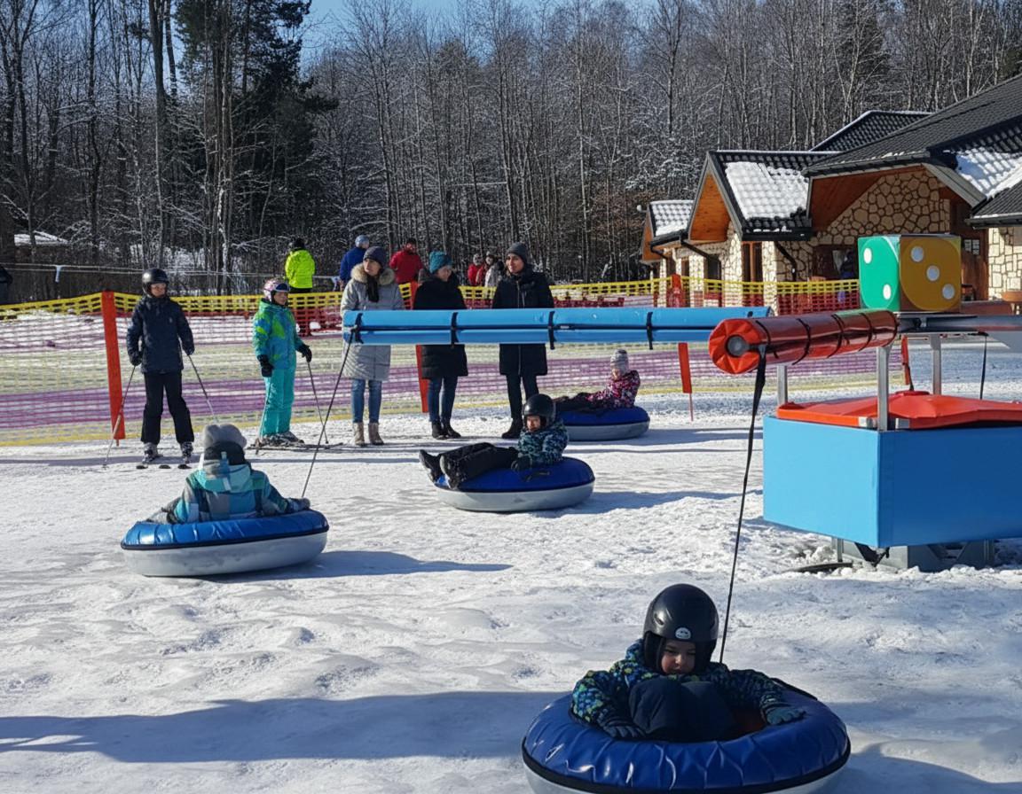 Sezon letni: Obsługa torów tubingowych na nawierzchniach igelitowych oraz element wyposażenia letnich parków zabaw.
